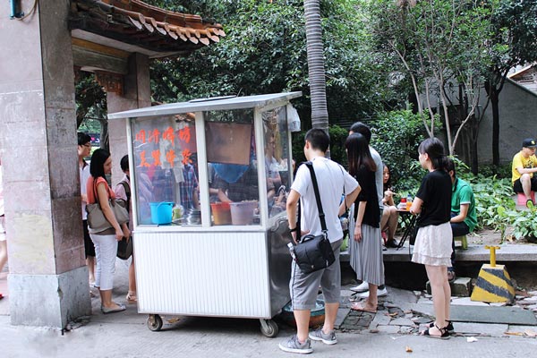 人們圍坐著小推車,檔主們開始了買賣,到處一遍紅火的景象。就算是熱辣辣的夏天,對(duì)愛吃的人們來說,根本形成不了障礙,誰叫我就愛這陣香氣,就愛這種嚼勁,就愛喝熱湯逼出來的那種大汗淋漓的感覺。
